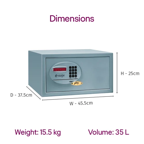 Godrej E-Swipe Home Locker is a premium smart home locker built for modern Mumbai living where safety, convenience, and space efficiency matter. With its intuitive digital swipe access and robust construction, this locker delivers dependable protection for jewellery, important documents, cash, and personal valuables. Ideal for apartments, offices, and small commercial spaces, it offers organised storage that blends seamlessly into contemporary interiors. Order today to secure what matters most with confidence.