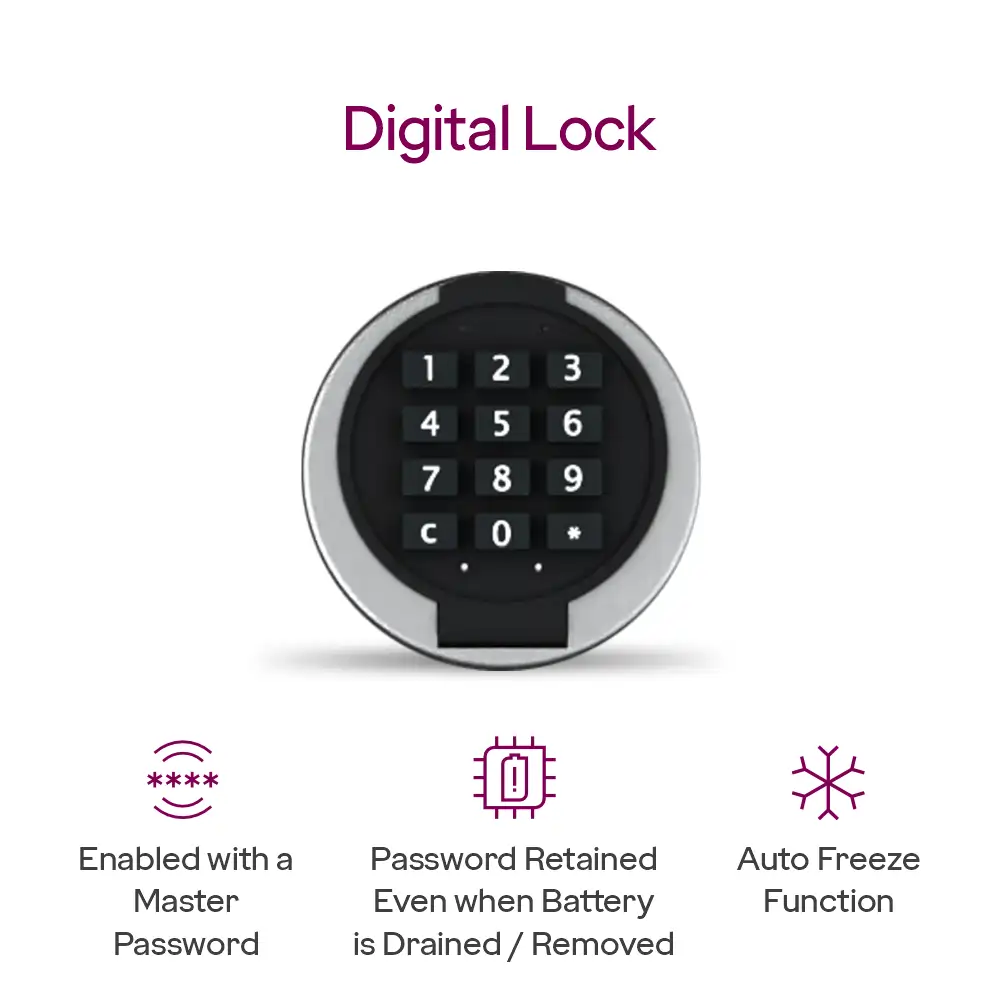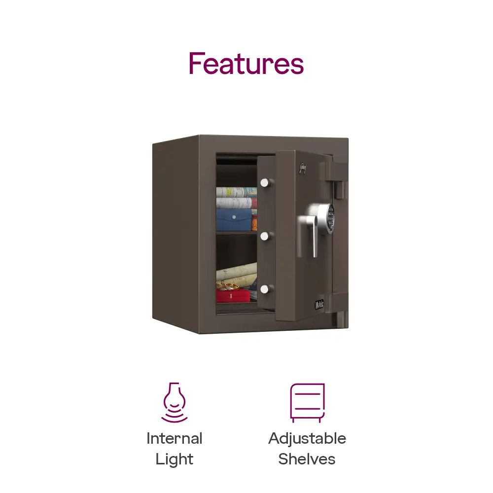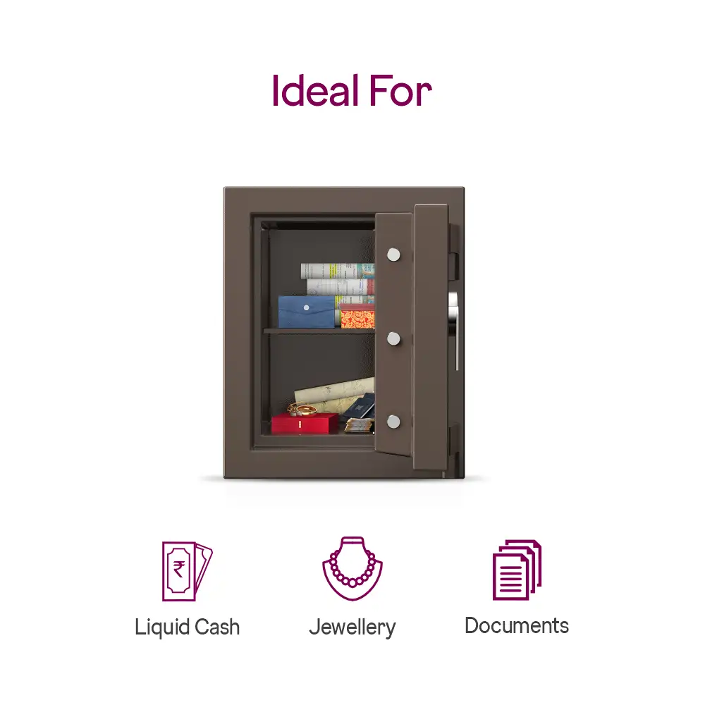 This model is built with high-quality steel for durability and long-term use. It operates on an electronic locking mechanism for enhanced control. The internal space is designed for efficient organisation of valuables. The exterior EL coffee brown finish offers resistance to daily wear while maintaining a premium appearance. Designed for Indian conditions, it delivers consistent performance with simple upkeep.