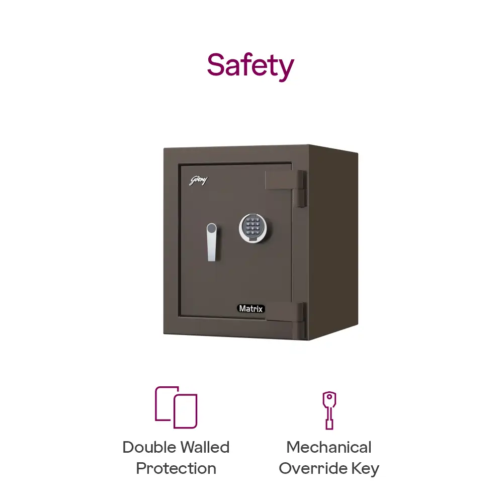 Godrej Matrix 1814 (50L) V6 Powerful 1 EL Safe brings together compact design, modern security, and premium aesthetics for everyday protection. Godrej Matrix 1814 (50L) V6 is ideal for Mumbai homes and offices that need reliable electronic locking without occupying too much space. Its elegant coffee brown finish adds sophistication while keeping valuables secure. Secure smarter today with trusted protection.