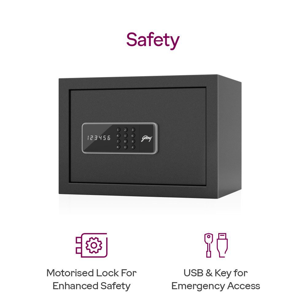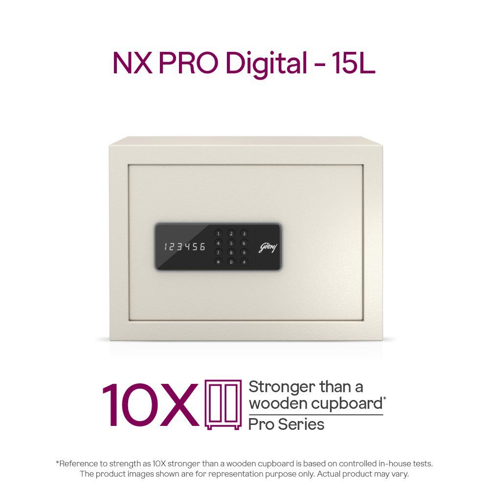 Godrej NX Pro Digital (15L) Ebony Home Locker offers dependable digital protection for cash, jewellery, and important documents while fitting neatly into modern interiors.