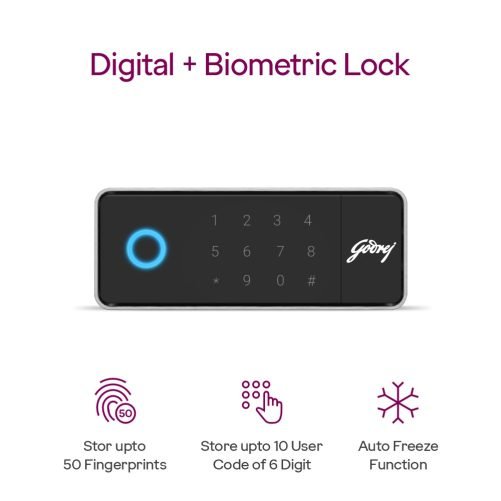 Godrej NX PRO Luxe Digi Bio 30L Locker combines modern access technology with robust build quality to deliver dependable protection. Featuring fast biometric fingerprint recognition and a secure digital keypad, it gives you flexible entry options for convenience and safety. The compact form factor makes it perfect for urban living spaces, easily fitting inside wardrobes, cupboards, or office shelves. Designed by Godrej, a brand known for quality and trust, this smart locker enhances security without occupying much space.