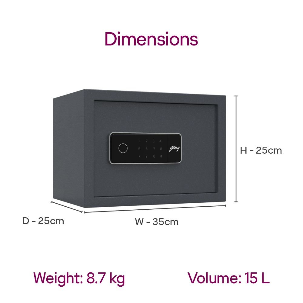 Level up the security of your valuables with the Godrej Nx Pro plus 15 L home locker through a host of advanced features like auto freeze, storage of upto 50 fingerprints. It is ideal to store liquid cash, jewellery and documents