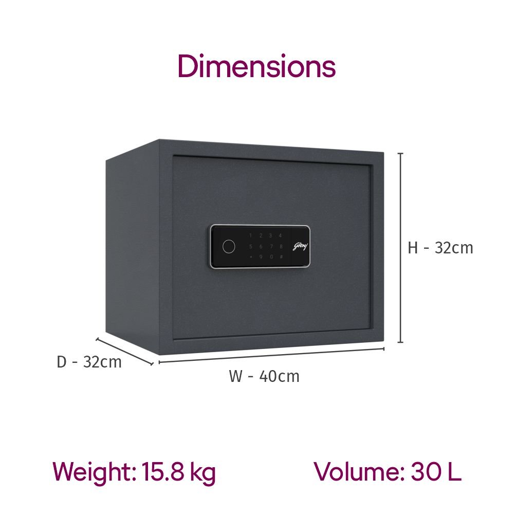 Level up the security of your valuables with the Godrej Nx Pro plus 30 L home locker. Say goodbye to storing valuables in a cupboard. Upgrade your home security now.The Godrej NX pro Plus 30L home locker is equipped with a host of features like motorised lock for enhanced safety, In BUILT iBuzz alarm system. It stores upto 50 fingerprints and comes with an auto freeze feature. You can now set upto 10 user codes of 6 digits. It is perfect to store jewellery, liquid cash and documents. It is equipped with dual access mode of Digital and Biometric lock type.