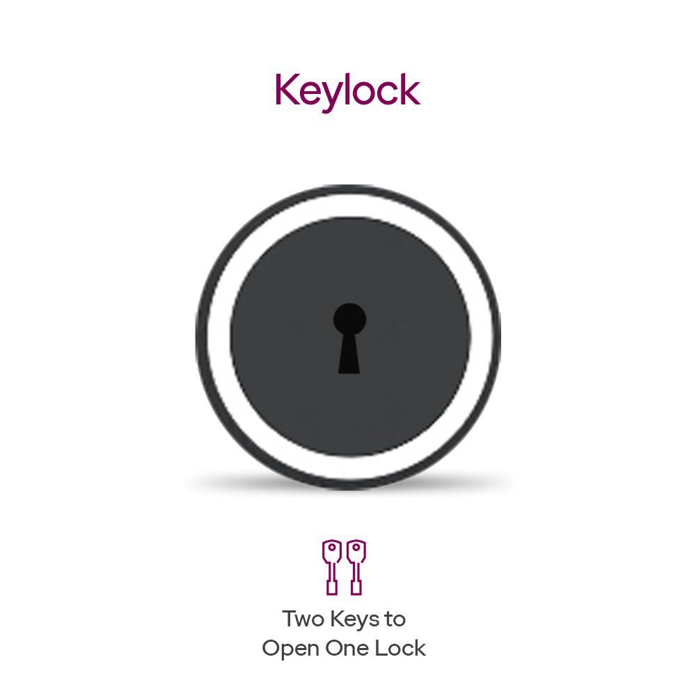 Isme traditional key lock system hai jo simple aur reliable use deta hai.