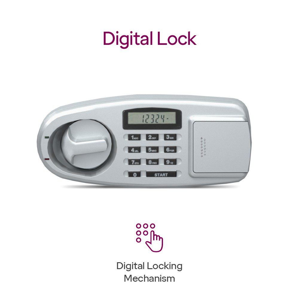The digital locking system ensures controlled access and smooth operation. A 40-litre internal capacity allows organised storage without clutter. The strong steel construction enhances durability and tamper resistance. Buyers benefit from easy access, compact design, and dependable security for everyday valuables. Its clean and modern finish complements home interiors while delivering trusted protection from a reputed brand.