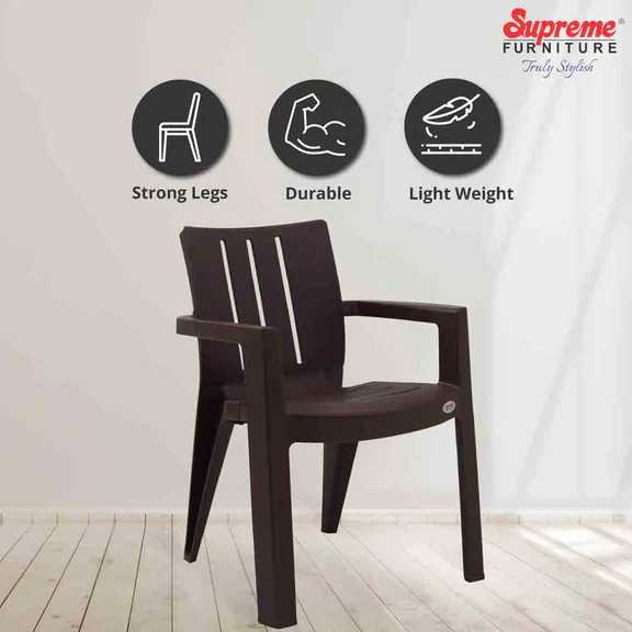 The Supreme Kent Plastic Chair is truly a class apart. Its unique wooden look with a premium texture finish makes it stand out in any setting. The heavy-weight champion of plastic chairs, Kent is designed to be stackable, making it easy to store and move as needed. The premium matt finish with arms and semi-gloss texture ensures it looks elegant while being practical for everyday use.